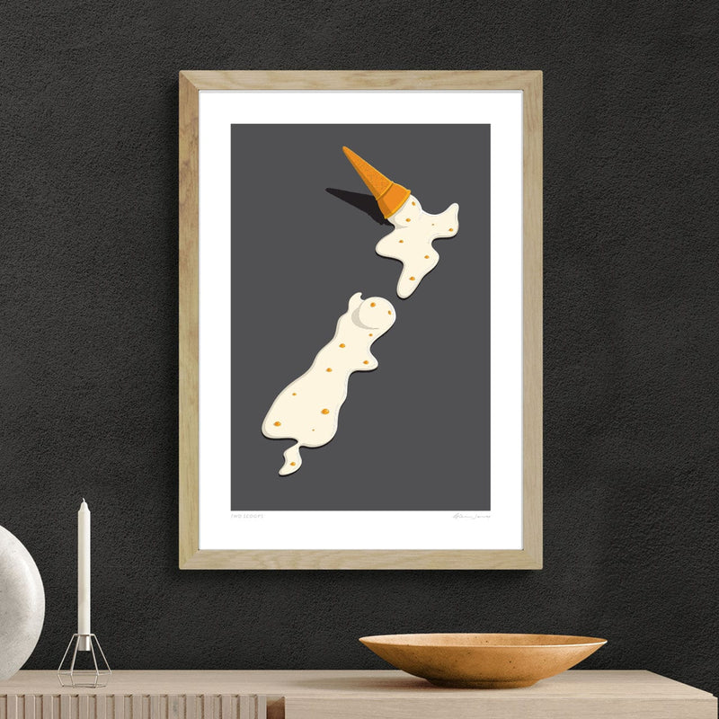 A wide range of art prints in a range of sizes, available in white, black or raw oak frames all printed & produced in Auckland