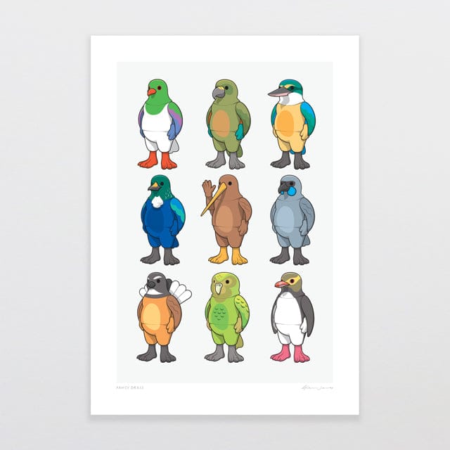 "We are an Auckland based family business, now 11 years old. Glenn creates the artwork, Julia takes care of the business and our kids help provide lots of inspiration. Glenn's art is an exploration of different styles and ideas often with a unique kiwi influence and all with the aim of putting a smile on people’s faces."